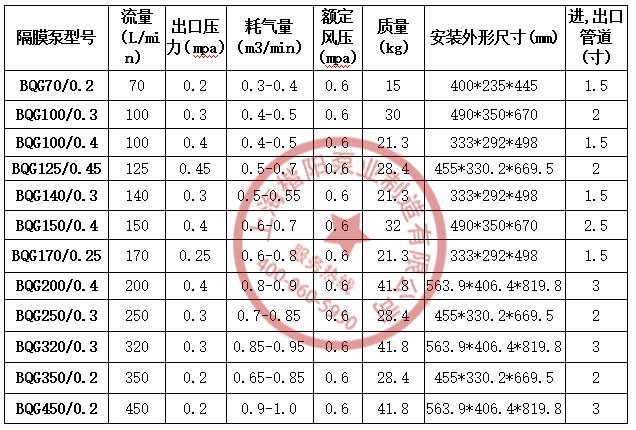BQG200/0.4礦用氣動(dòng)隔膜泵性能參數(shù)